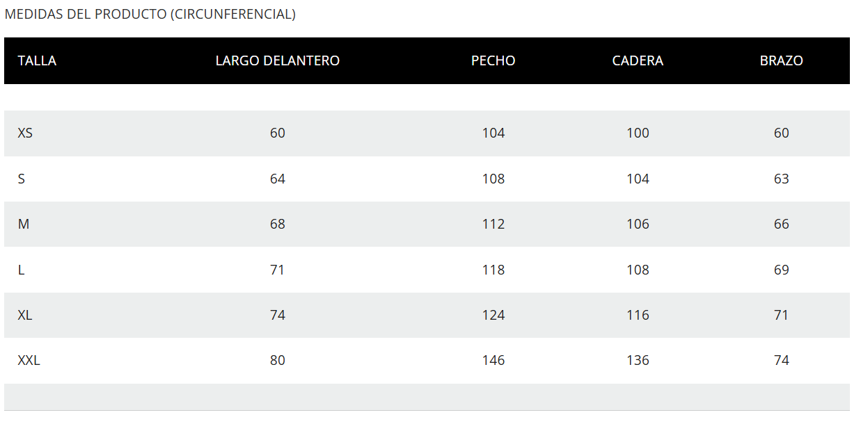 Compara estas medidas con una prenda que ya te quede bien. Si prefieres un fit más holgado, considera ese criterio al momento de elegir.